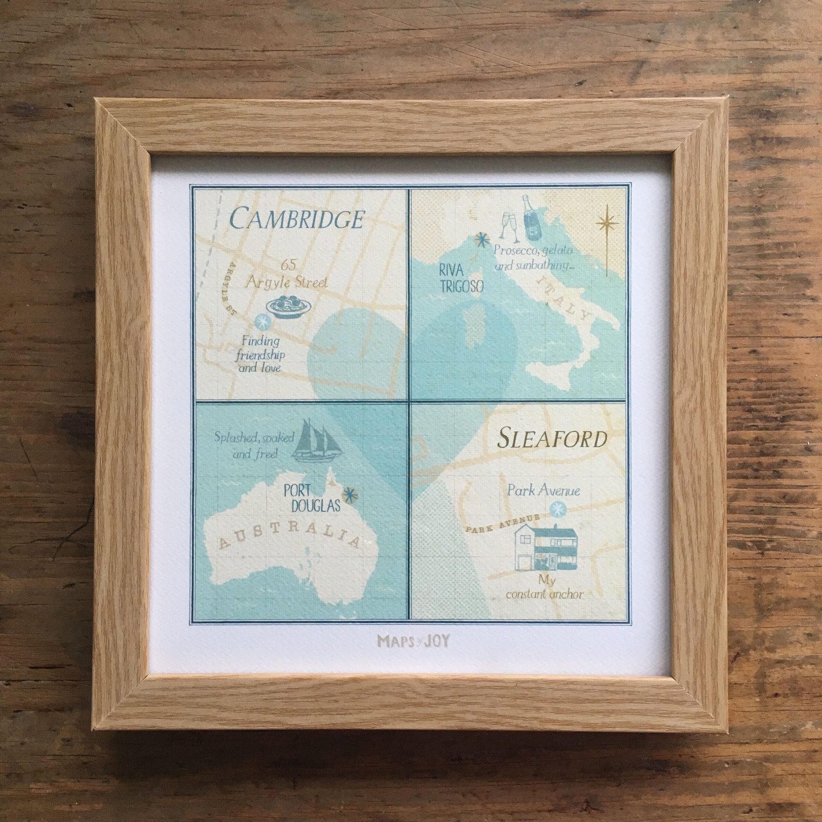 Jo and Joe decided that my Four Squared map would be the perfect canvas to celebrate the pivotal moments of their life together…